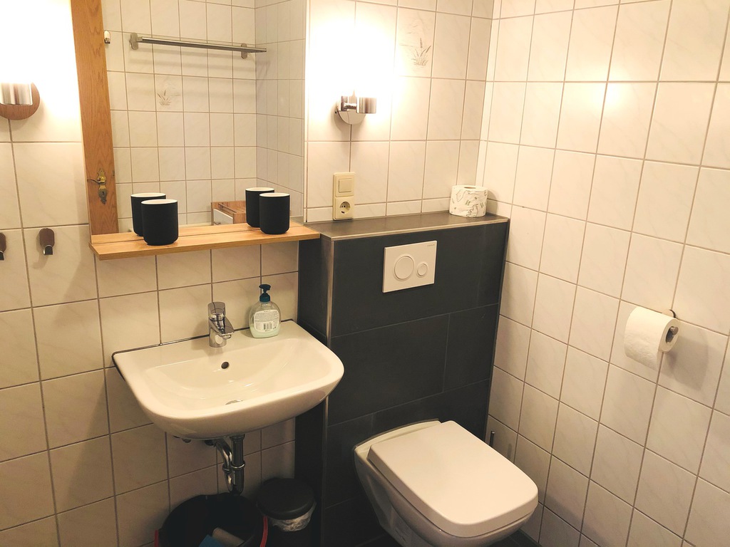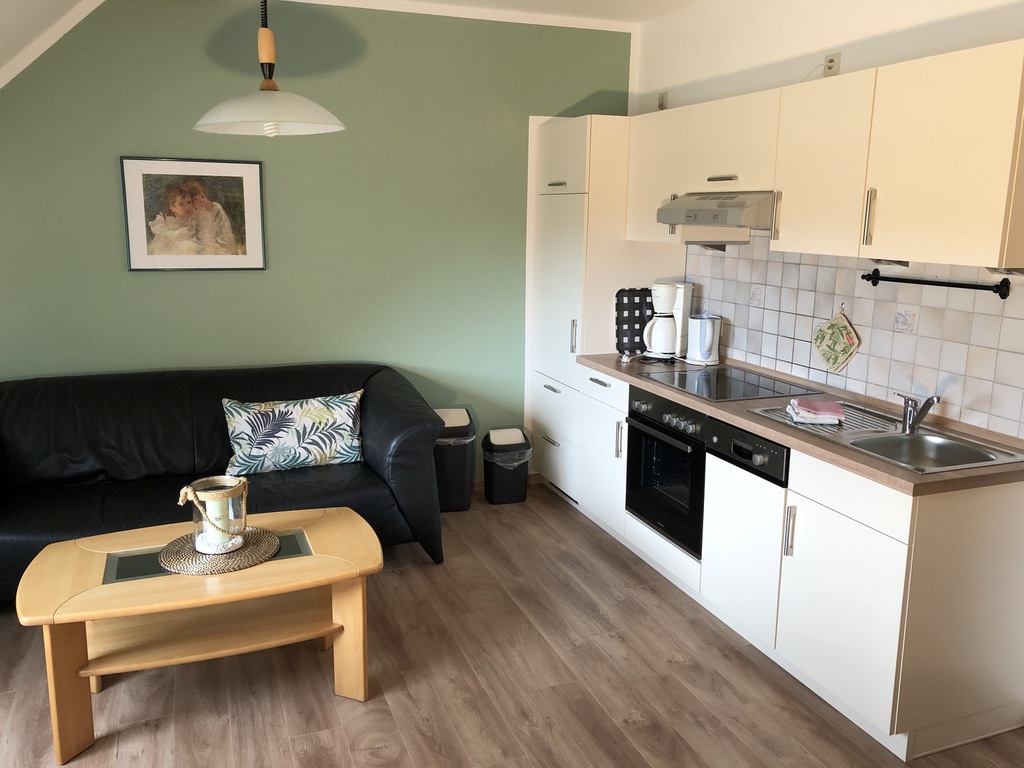 Gemütlich eingerichtete 70 qm große Ferienwohnung mit Wohnküche, Bad und 2 Schlafzimmern mit 4-6 Betten. Einbauküche mit Backofen, Geschirrspüler, Wasserkocher, Mixer und Toaster reichhaltig ausgestattet. Sonnige Wohnküche mit Blick zur Ponyweide mit Couchgarnitur und großer Essgruppe. Kostenloses Telefon und W-LAN Zugang. Spieleraum und Spielplatz in der Nähe, große Gemeinschafts - Sonnenterrasse unten vor der Wohnung. Kinderbett und Hochstuhl vorhanden. Kurtaxfrei. Preis für 2 Erw. + 2 Kinder, bis 6 Pers. möglich.